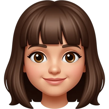 A brunette girl with hair till shoulders with side curtain bangs and a bit dark skin/tanned emoji