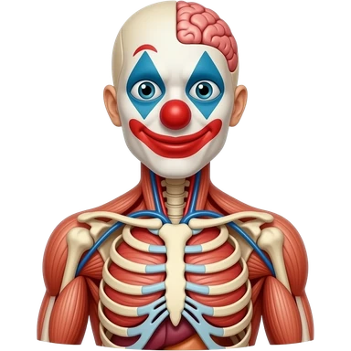a body made out of body parts organs bones muscles brains eyeballs head wearing a clown mask emoji