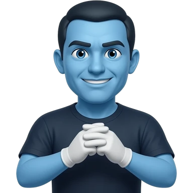 a blue emoji that is mischievously rubbing his while gloved hands together emoji