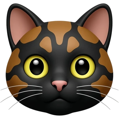 A black base tortoise shell brown colored cat face emoji looking like a eager professor. emoji