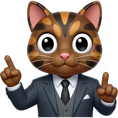 A black Tortoiseshell cat face emoji looking like a eager professor with gassed and paw up with one finger up. Only face and cat paw. emoji
