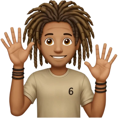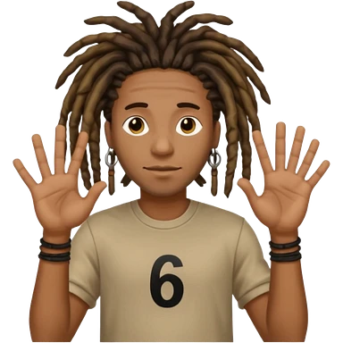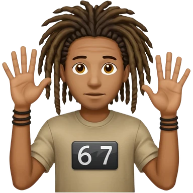 A Black man with dreads holding up 6 in his right hand and 7 in his left hand emoji