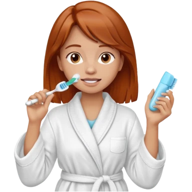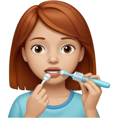 A reddish-brown-haired girl, newly awakened in the morning, is getting ready for work, brushing her teeth. emoji