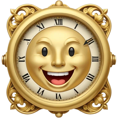 a clock with a face laughing extremely with it’s eyes closed emoji