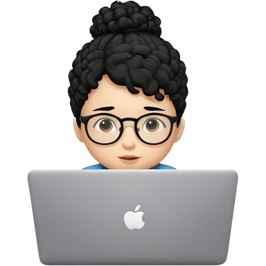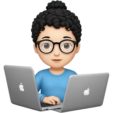 A baby boy DEVELOPER WITH A laptop, black curly hair and topknot, wearing glasses emoji | AI Emoji Generator