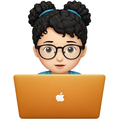 A baby DEVELOPER WITH A laptop, black curly hair and topknot, wearing glasses emoji