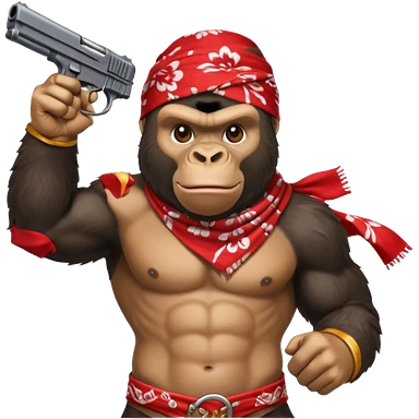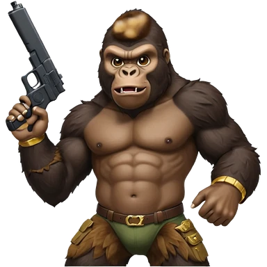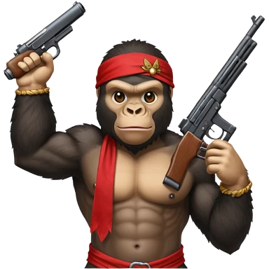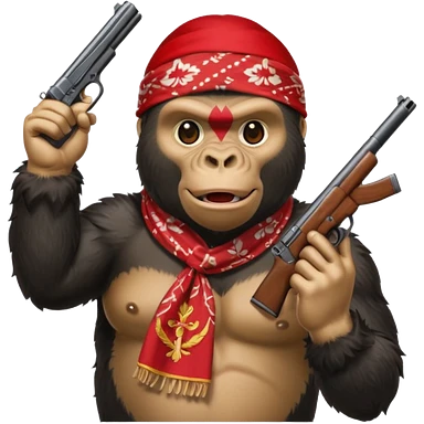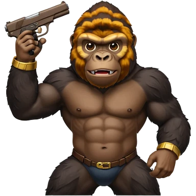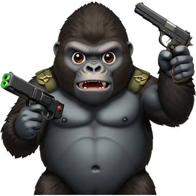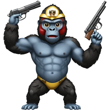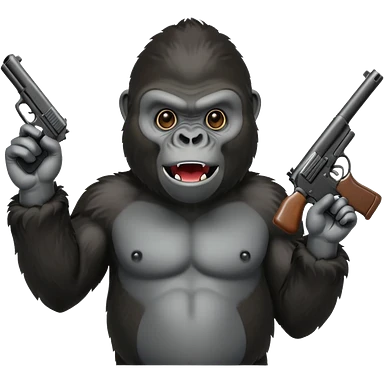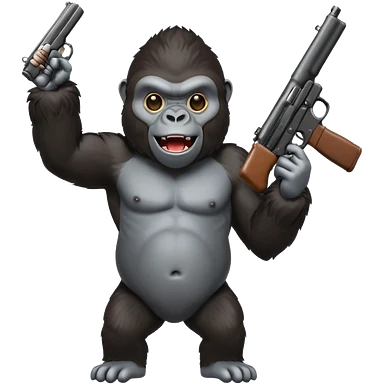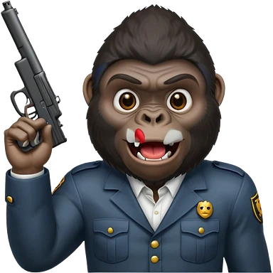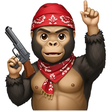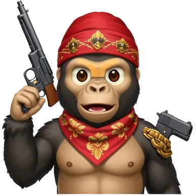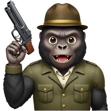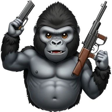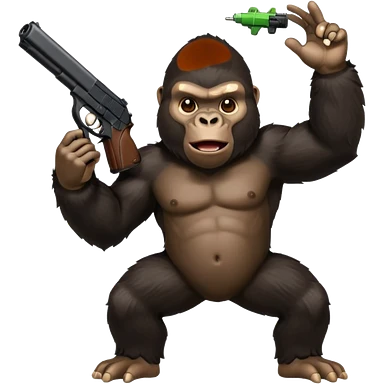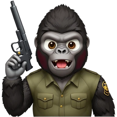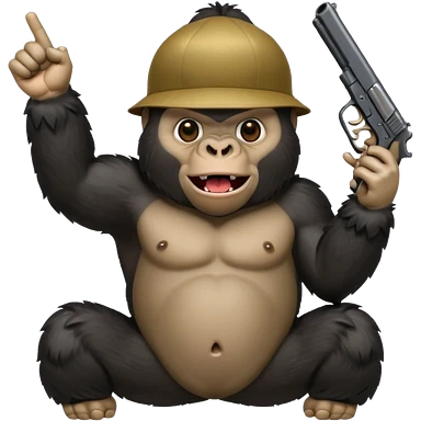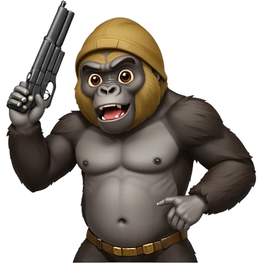 A baby gorilla holding a gun in the air emoji | AI Emoji Generator