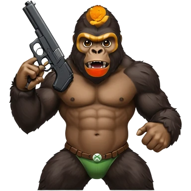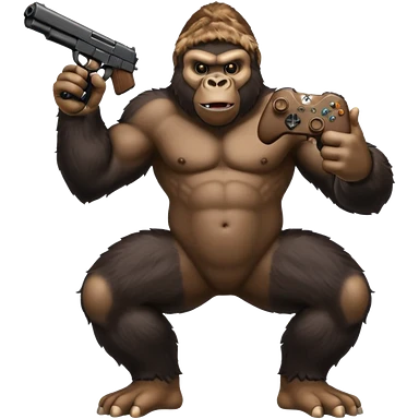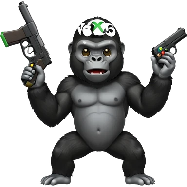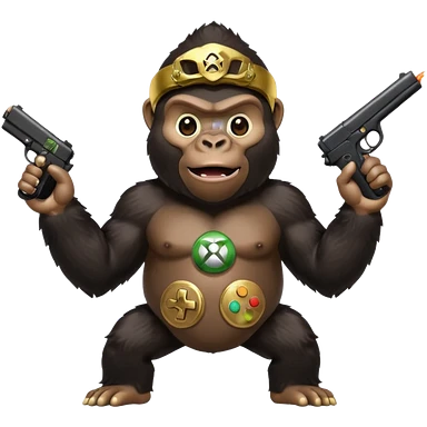 A gorilla holding a gun in the air with a Xbox controller emoji