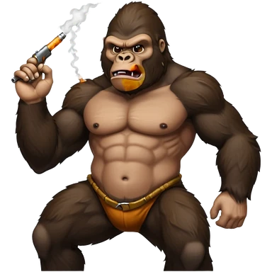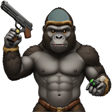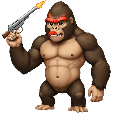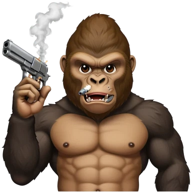 A gorilla smoking a blunt and holding a gun in the air emoji