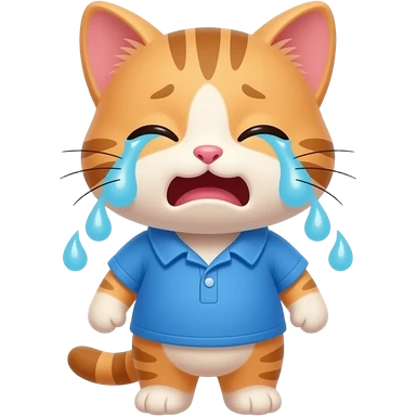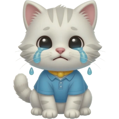 Cartoon baby kitten wearing a blue shirt crying emoji