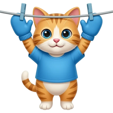 Cartoon baby kitten wearing a blue shirt wearing blue mittens hung the out to dry emoji
