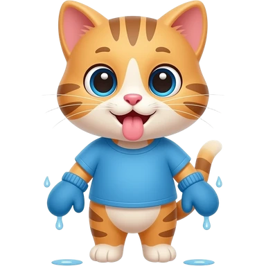 Cartoon baby kitten wearing a blue shirt wearing blue mittens hung the mout to dry emoji