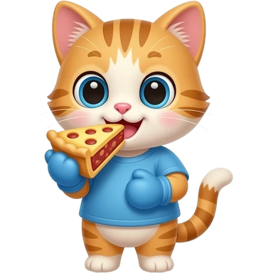 Cartoon baby kitten wearing a blue shirt wearing blue mittens eating a pie emoji