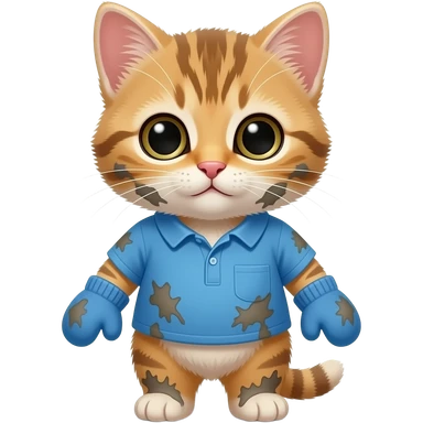 Cartoon baby kitten wearing a blue shirt wearing blue mittens were dirty emoji