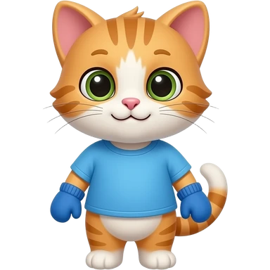 Cartoon baby kitten wearing a blue shirt wearing blue mittens emoji