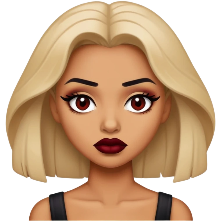 light-skinned black girl with very long eyelashes with long strait dark red hair with edges wearing a black top with no sleeves. and a red accessory on her head with nose and mouth piercings and is a baddie and looks like a bad girl. emoji