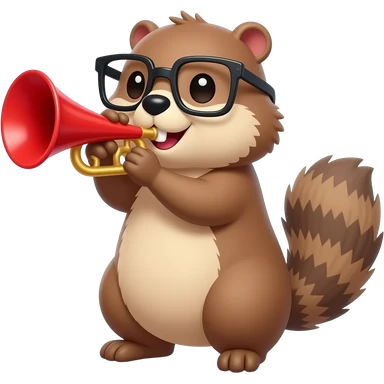 A cute groundhog with square Glasses blowing on a party horn with confetti all around emoji