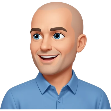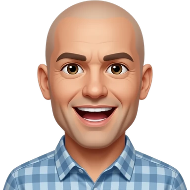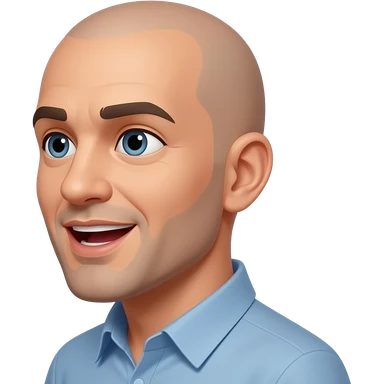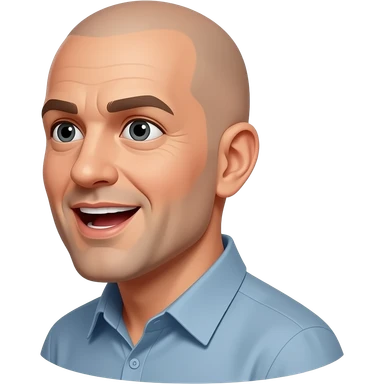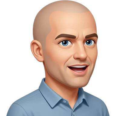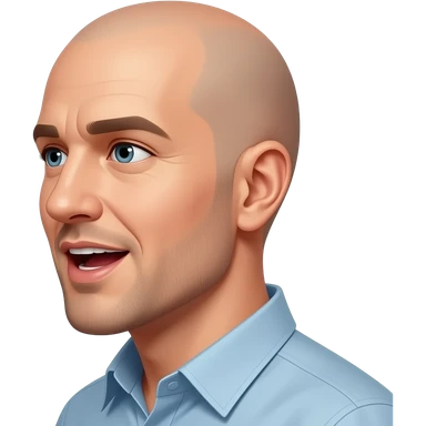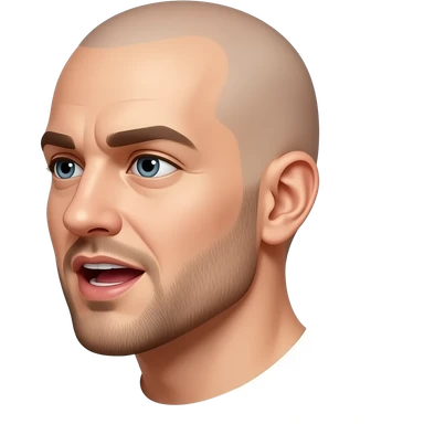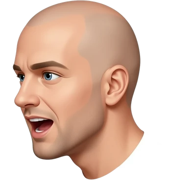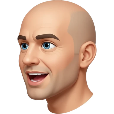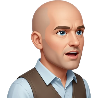 a bald man looking directly to the side, talking with an open mouth emoji