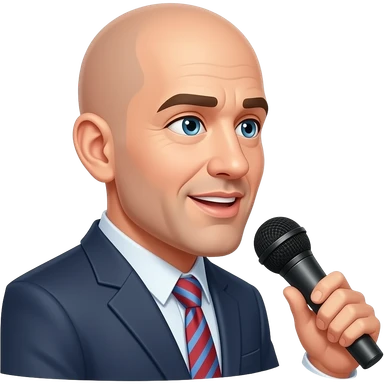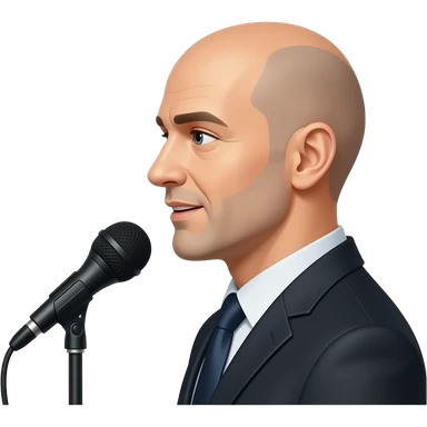 a bald man looking to the side talking to a microphone emoji
