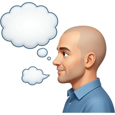 a bald man looking to the side talking with shout balloons, silhouette emoji