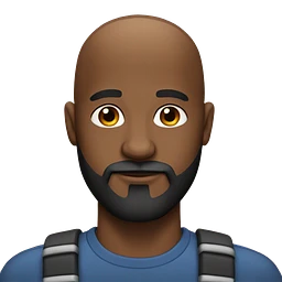 Bald man with a very very strong square jaw and a black button up shirt emoji