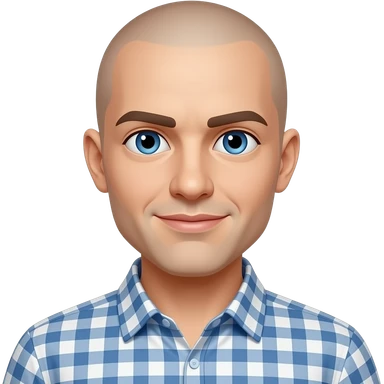 totally bald person with blue eyes and a uniform emoji