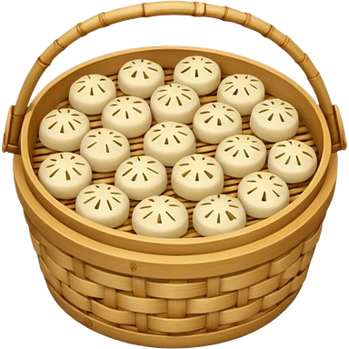A bamboo steamer basket filled with tiny dumplings. emoji | AI Emoji Generator