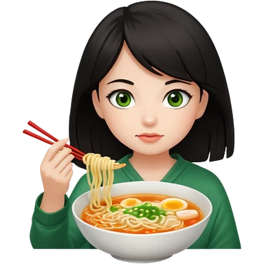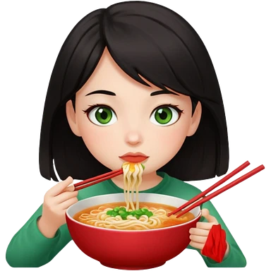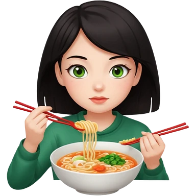 A girl who livres k-drama eating a ramen with chopstick emoji