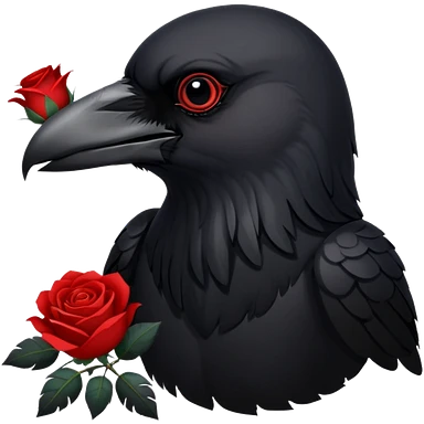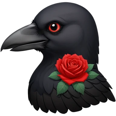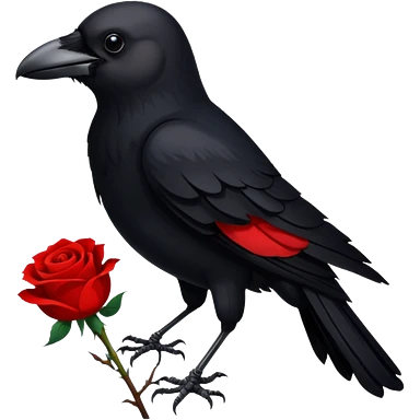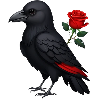 A crow with a white rose with red in its beak emoji