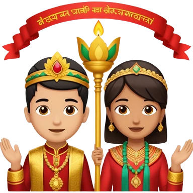 ১৬ডিসেম্বর উপলক্ষে শুভেচ্ছা । A banner is standing with a boy on one side and a girl on the other. emoji | AI Emoji Generator