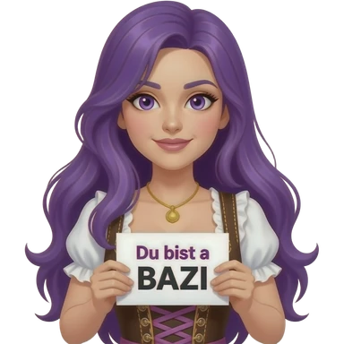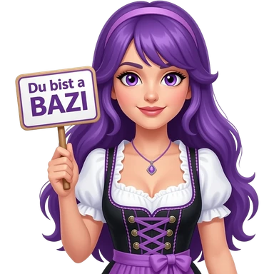 girl with long purple hair wearing a dirndl holding a Du bist a BAZI sign emoji