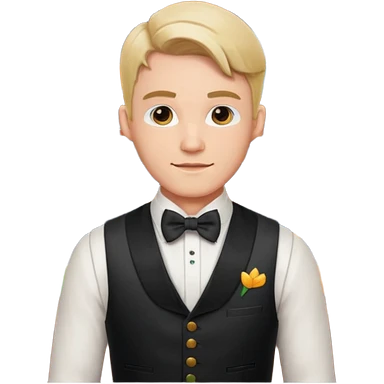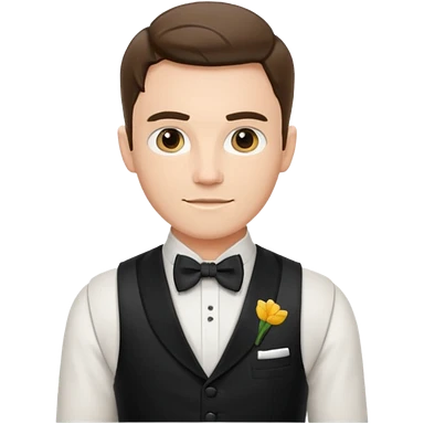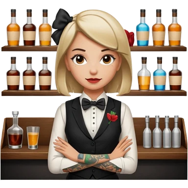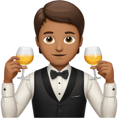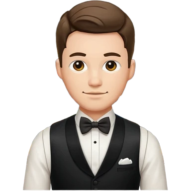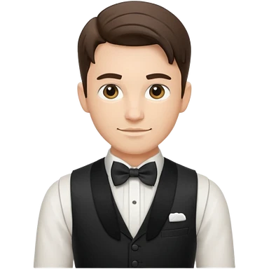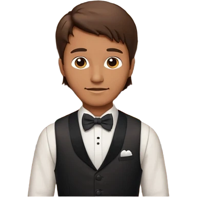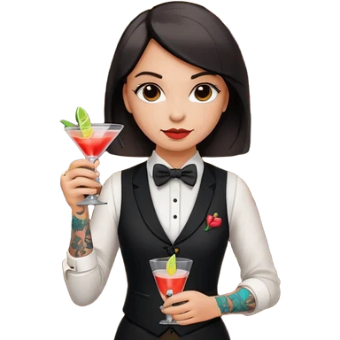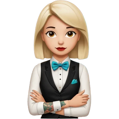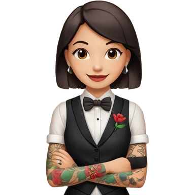 a bartender man with bow tie and vest, having brown wavy hair and tattoo emoji | AI Emoji Generator