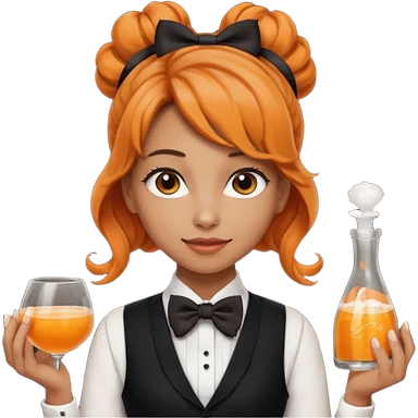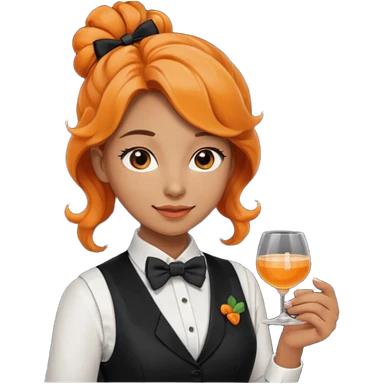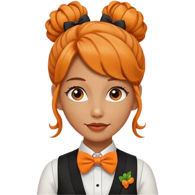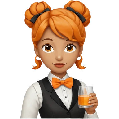 a bartender lady with bow tie and vest, having orange wavy bun hair emoji