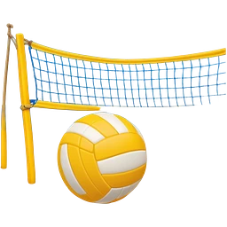 A beach volleyball net set up on the sand, with a volleyball hovering above it. The scene captures the action of a game in progress, with the sun shining brightly, beach sand stretching out, and the ocean visible in the background. emoji | AI Emoji Generator