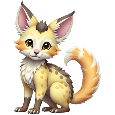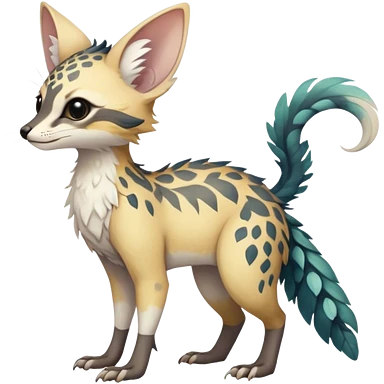 A beaked beaky 4-legged, feral, digitigrade, lanky, elegant, Gryphon-Griffin-Griff-Avian-hybrid, with Red-Panda-colors and markings, full body, cute, realism, with a long thin tufted tail, hyper-realistic emoji | AI Emoji Generator
