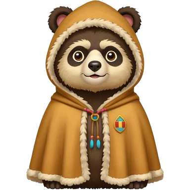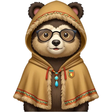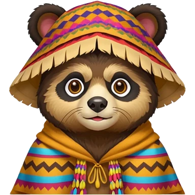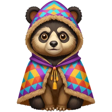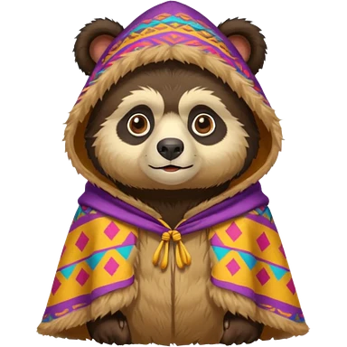 Spectacled bear wearing a chullo and a poncho that says I.T.I. CUSCO on the chest emoji
