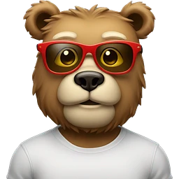 a bear with too many muscles, square glasses, moustache. emoji | AI Emoji Generator