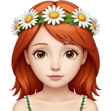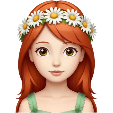 a beautiful woman with red hair and red eyes. The woman wear a black little cutted dress. She have red lipstick and she have a seductive look and smile. She have a rose flower in her hair emoji | AI Emoji Generator