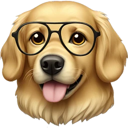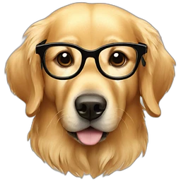 A beautifull golden retriever with glasses and personnal computer emoji | AI Emoji Generator