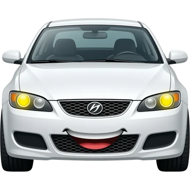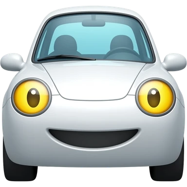 White car with yellow eyes as the headlights and a happy mouth emoji