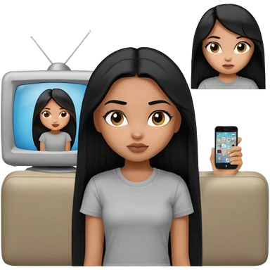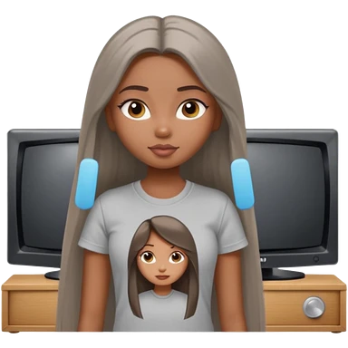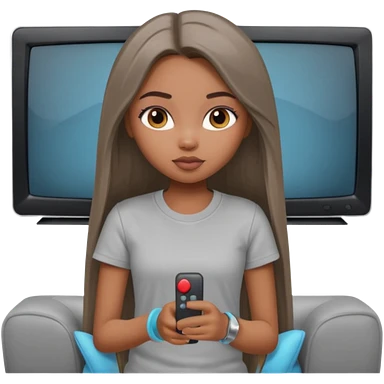a pretty bratz dusky girl with long straight hair watching tv and wearing a grey tshirt emoji