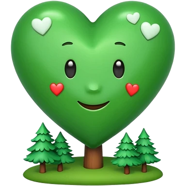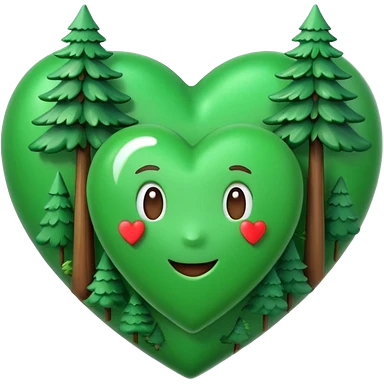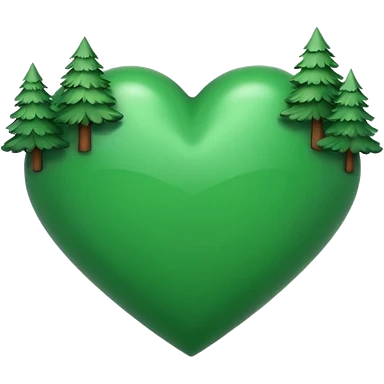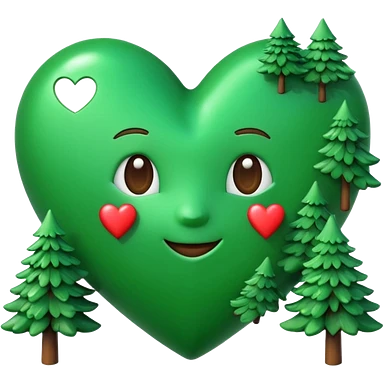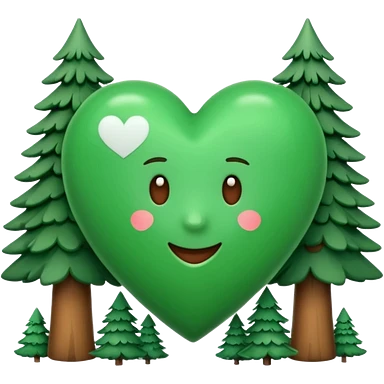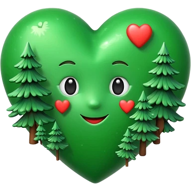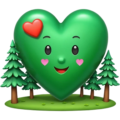 a big green heart emoji with small pine trees behind it and i love you text on the front of the heart emoji
