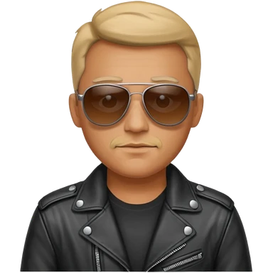 solo young man with short dark brown undercut hair, blue eyes, sporting a short beard, embodying a biker aesthetic, his gaze sharp emoji
