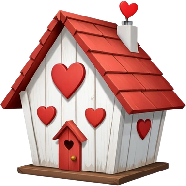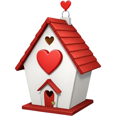 a birdhouse with a normal circular hole and a red roof with the rest white and a heart at the top but below the roof emoji | AI Emoji Generator