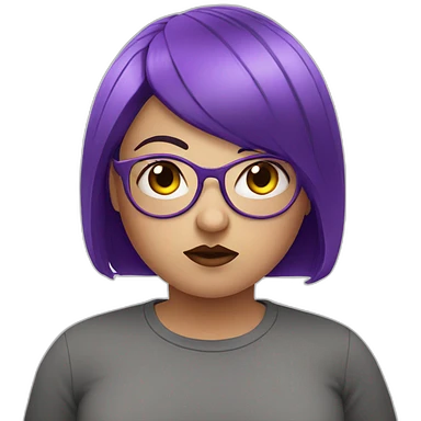 aggressive overweight girl with a purple bob, nose piercing and round glasses emoji