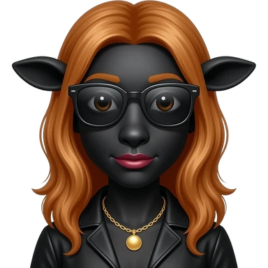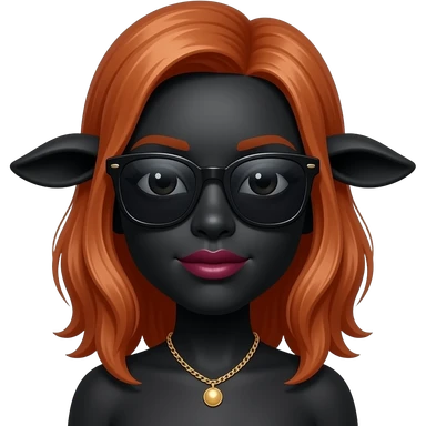 A Black Sheep with auburn hair wearing sunglasses, necklace and lipstick emoji
