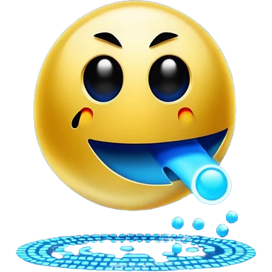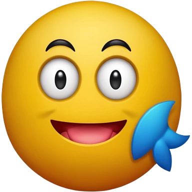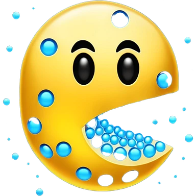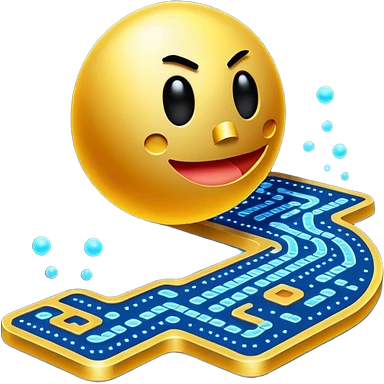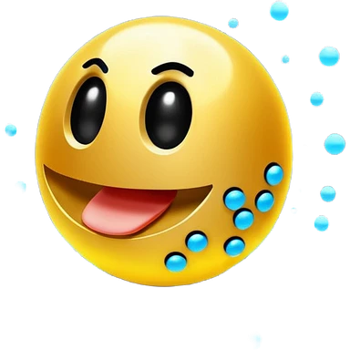 A yellow round pixel from the game Pacman is sunbathing in the sun by the sea under an umbrella emoji