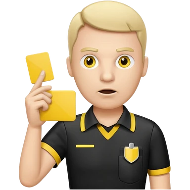 A serious referee blowing a whistle, holding a yellow card up. emoji