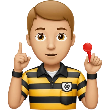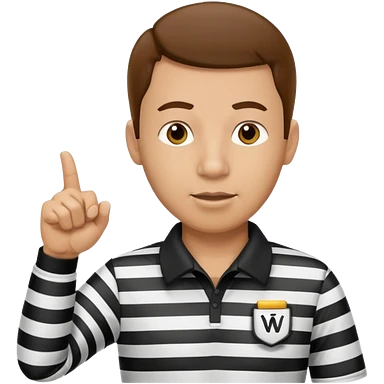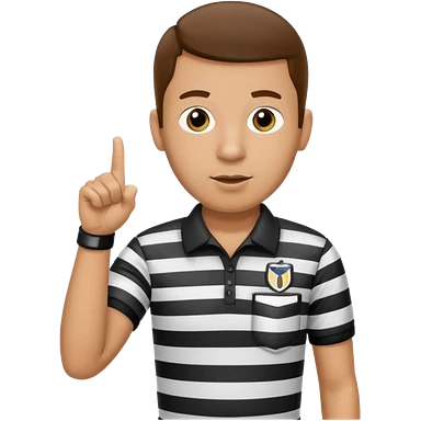 A calm referee with striped shirt, pointing clearly toward the field. emoji