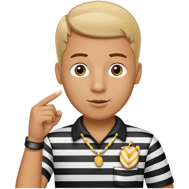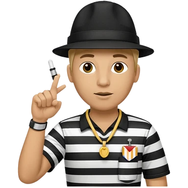 A sports referee with a whistle wearing black and white striped shirt emoji